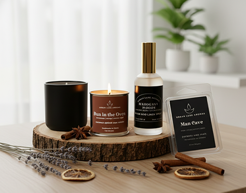 Urban Luxe Aromas is where modern design meets sensory indulgence. We create fragrance experiences that elevate every space — from handcrafted candles and wax melts to room sprays, linen mists, and uniquely poured paint‑can candles. Whether you're setting the mood at home, refreshing your linens, or taking luxury on the go with our car diffusers, each scent is crafted to bring warmth, depth, and modern elegance into your everyday life.